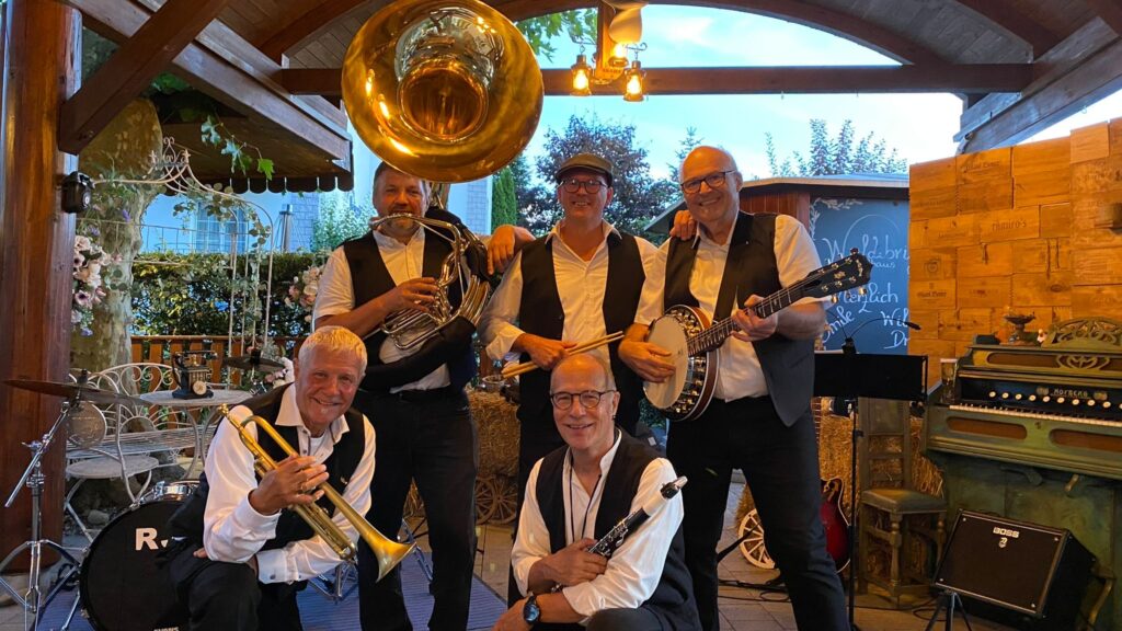 Uns kann man im Trio, Quartett, Quintett oder Sextett buchen. Auftritt vom 14.03.2026 an der KMU-Ausstellung in Baar. Am Bass André Andermatt als Aushilfe. Herzlichen Dank André! Auftritt vom 22.12.2025 im Betagtenzentrum Emmen. Unsere neue Besetzung Roli’s Jazzband im Gasthof Waldibrüggli in Emmen am 06.09.2025 Roli’s Jazzband im Restaurant Bären in Oberägeri am 11.07.2025 Auftritt vom 05.10.2024 im Betagtenzentrum Emmen. Auftritt vom 10.08.2024 bei Metzgerei Rogenmoser in Baar mit Philipp am Banjo. Herzlichen Dank Philipp! RJB am 28.06.2024 im Gasthaus Bären in Oberägeri Hier weitere Audio-Kostproben, viel Spass! 13 Dans les rues d’Antibes RJBhttps://roli-vonburg.ch/wp-content/uploads/2021/03/13-Dans-les-rues-dAntibes-JQ.mp3 40 New Orleans Hula RJBhttps://roli-vonburg.ch/wp-content/uploads/2021/03/40-New-Orelans-Hula-2-JQ.mp3 60 When I grow too old to dream RJBhttps://roli-vonburg.ch/wp-content/uploads/2021/03/60-When-I-grow-too-old-to-dream-JQ.mp3 74 When you and I were young, Maggie RJBhttps://roli-vonburg.ch/wp-content/uploads/2021/03/74-When-you-and-I-were-young-Maggie-JQ-2.mp3 Copyright – Roli von Burg